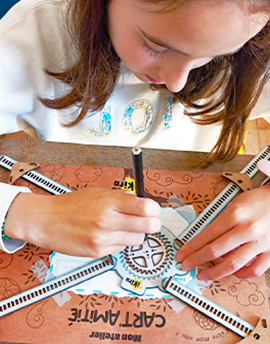 Votre enfant fabrique un objet utile et durable qui l’aide à mettre en pratique, en famille et dans sa vie quotidienne, les découvertes de l’aventure.